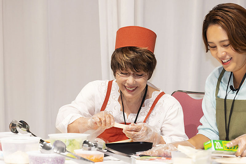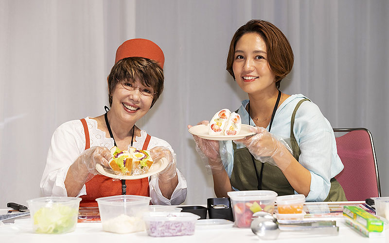 会場には、10倍以上の倍率で抽選に選ばれた参加者たちが、スペシャルゲストの料理愛好家 平野レミ、料理家・食育インストラクター 和田明日香といっしょにサンドイッチづくりへ。