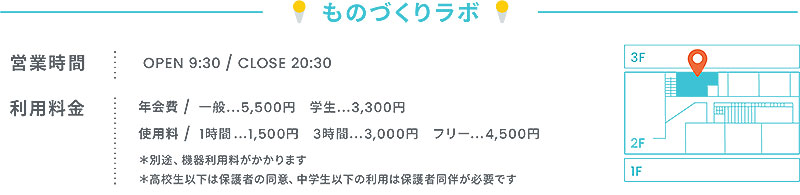 想像したものを自らの手でカタチにするための機器や設備、工作ツールがそろったラボで、ものづくりにトライしてみて。