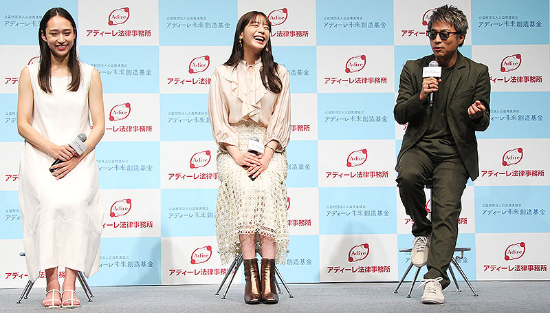アディーレ未来創造基金 #奨学金返済支援プロジェクト 募集開始日の10月10日には、都内で記者発表会を開催し、ゲストに田村淳・貴島明日香、そしてキービジュアルなど、同プロジェクトイメージキャラクターを務める白本彩奈が登壇。プロジェクトへの期待をこう語った。