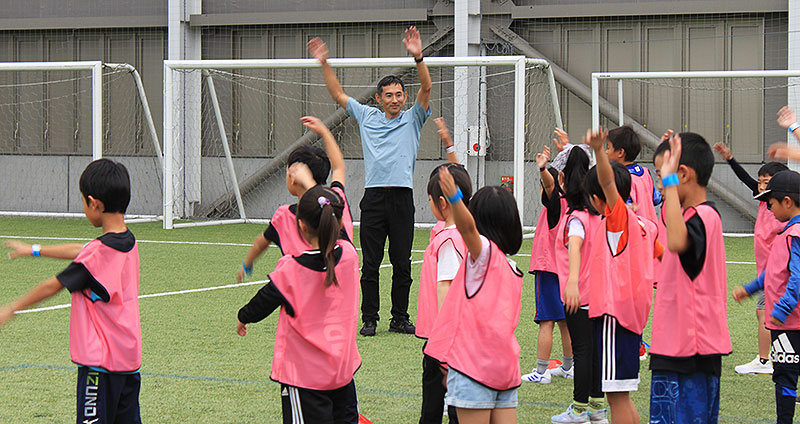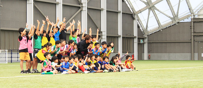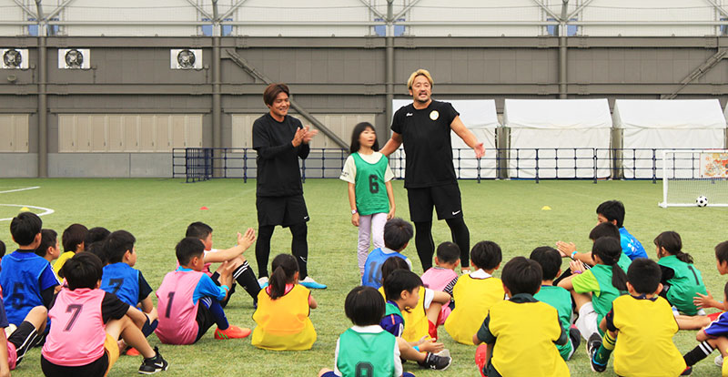 サッカー教室で大久保嘉人は、スタンドで子どもたちを応援するパパ・ママたちの質問に呼応。「うちも子どもが4人いるけど、あまり細かく教えないですよ」と気さくな“パパアドバイス”で、スタンドの親たちも共感した。