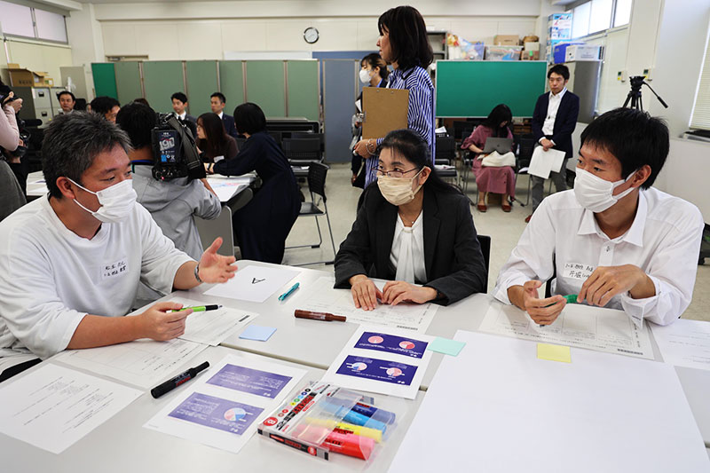 最後に、同高校の1年生男女に向けて授業を実施するにあたり、気をつける点や工夫すべき点を話し合い、ワークショップは終了。