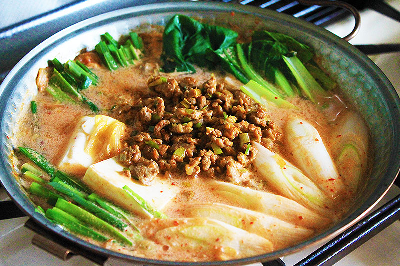 ってことで、アーモンドミルク研究会公式サイト(https://www.almondm-labo.jp/)に公開されている「アーモンドミルク 秋冬レシピ」最新メニュー、「アーモンドミルクキムチ担々鍋 ビタミンACEで免疫力アップ!」(Recipe by 柴田真希)をつくってみた。