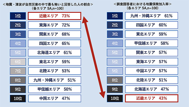 いっぽうで、地震保険の加入率を聞くと、近畿エリアが最も低い結果となり、具体的な地震への対策ができていないことが明らかに……。
