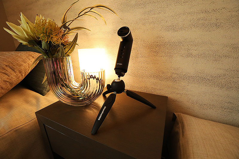 電動昇降照明や壁面デザイン家具は、シーンによって調光・位置を自動でコントロールしてくれる。これらもAPI連携制御が可能。