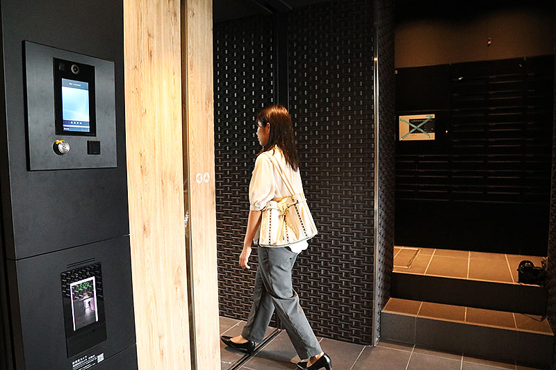 エントランスには、顔認証セキュリティを導入し、あらかじめ登録した居住者や特定業者を検知すると、ハンズフリーで入館できる。