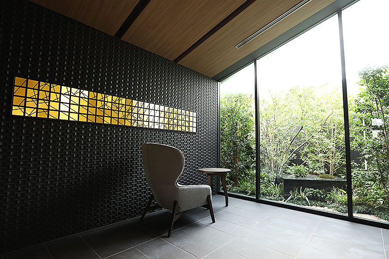 またエントランスホールには、カネカの有機EL照明システム「KUMIKO」で構成したインスタレーション空間が。