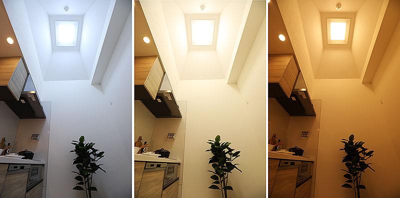 「リラクシングタイムプラン」では、月・昼・夜の光を調光してくれるトップライトつきキッチンにも注目を。