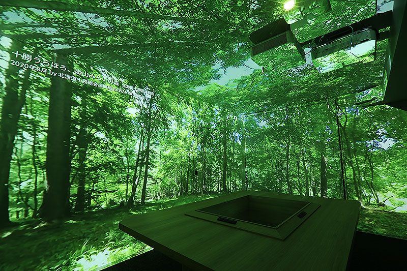 自治会室や会議室、共同ルームに、森林の映像、音、香りを再現した空間をつくることで、利用者の気分的変化や脈拍など自律神経への影響を長期的に検証し、効果測定を行っていく。