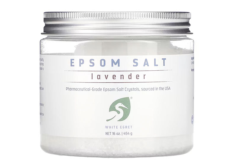 ホワイト・エグレットのエプソムソルトにはイオンミネラルとマグネシウムが含まれ、肌を潤いで満たし補充してくれる。