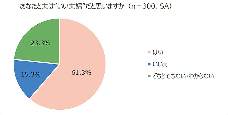 経営者の妻300名に、夫と“いい夫婦”だと思うか聞いたところ、「はい」と回答したのは61.3%。