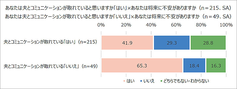 夫とコミュニケーションが取れてない妻の側が、将来に不安がある傾向が分かる結果に。