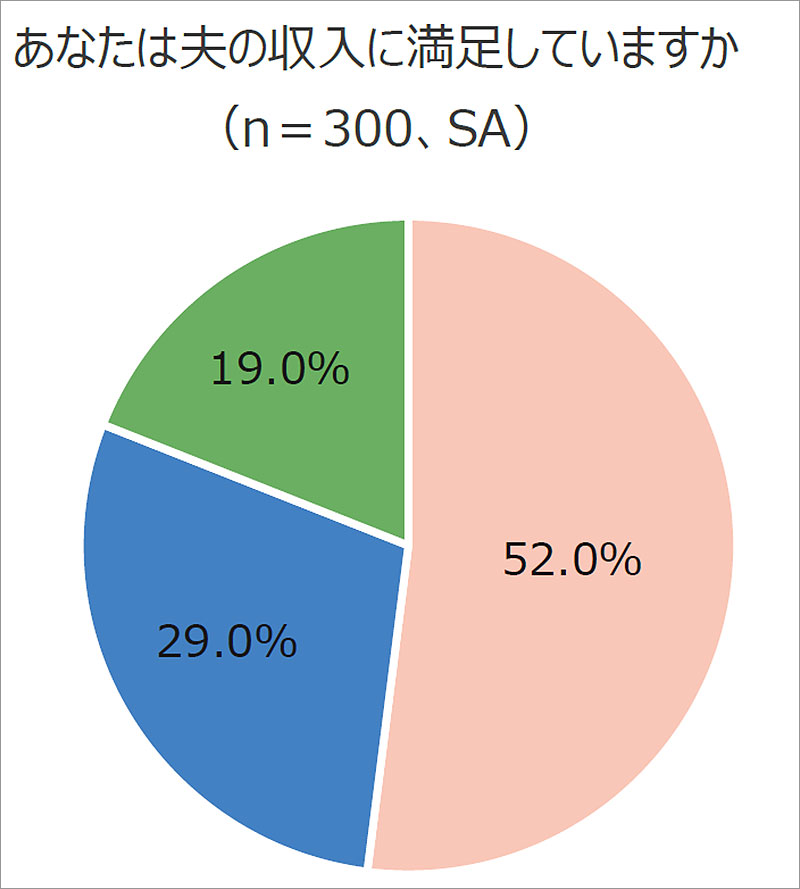 また、夫の収入に満足しているか聞いたところ、「はい」と回答したのは52.0%。