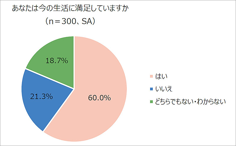 経営者の妻300名に、いまの生活に満足しているか聞いたところ、「はい」と回答したのは60.0%。