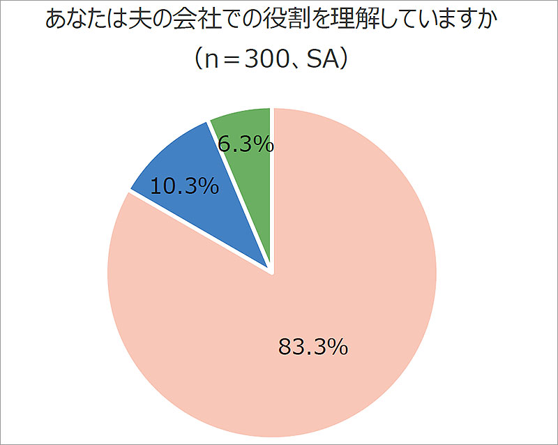いっぽうで、夫の会社での役割を理解しているか聞いたところ、「はい」と回答した経営者の妻は全体では83.3%で、夫とコミュニケーションが取れていると思う経営者の妻(215名)は91.2%が「はい」と回答した。