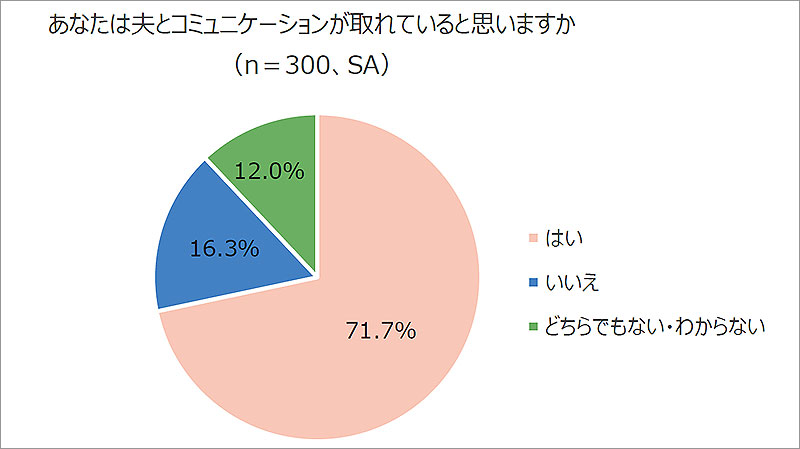 経営者の妻300名に、夫とコミュニケーションが取れていると思うか聞いたところ、「はい」と回答したのは71.7%。