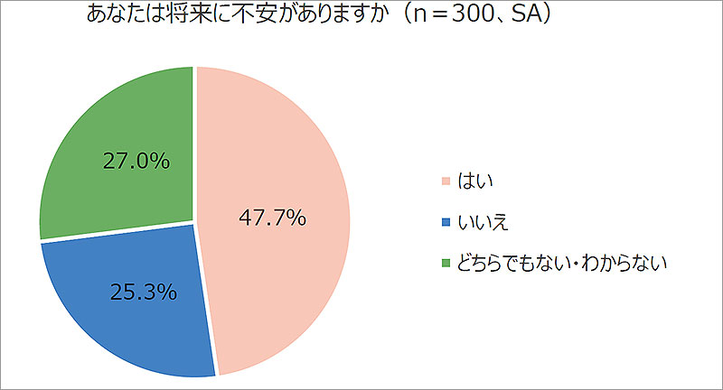 経営者の妻300名に、将来に不安があるか聞いたところ、「はい」と回答したのは47.7%だった。