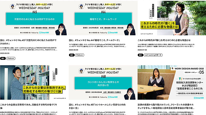 これまで日本社会の働きやすさを前に進める取り組みを表彰する「WORK DESIGN AWARD」や、「WORK and FES」などを行い、2023年もイベントや Podcast の企画、今の時代の働きやすさをつくるアイテムの開発などさまざまな活動を行っている。