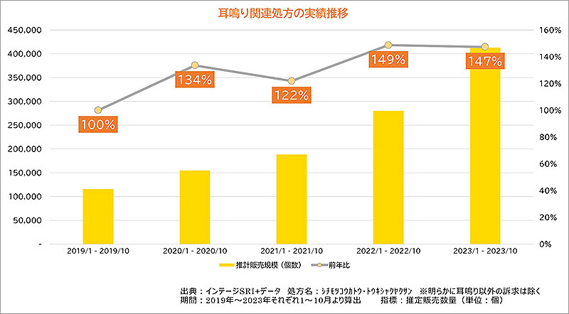 「耳鳴りの対応する『七物降下湯(しちもつこうかとう)』『当帰芍薬散(とうきしゃくやくさん)』が昨年に続き大きく伸長したことも、今年の特徴のひとつです。