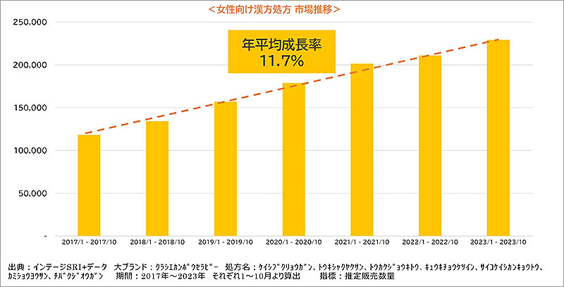 「2023年度の一般用漢方薬市場では、20代・30代の若年層需要の増加傾向が見られました。