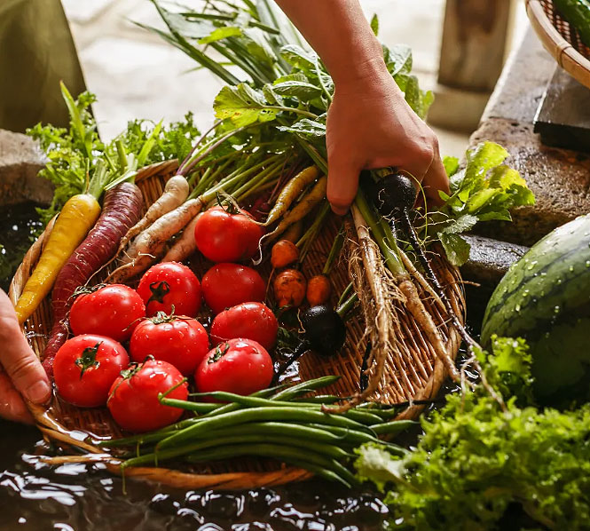 その食材は、無農薬で手間暇かけてつくった野菜や果物を中心に扱い、形や大きさが不揃いで一般の市場には流通しないものを中心に、その味わいや食感、香りは抜群でかみしめるたびに野菜の自然の甘さやおいしさを感じられるような料理に。