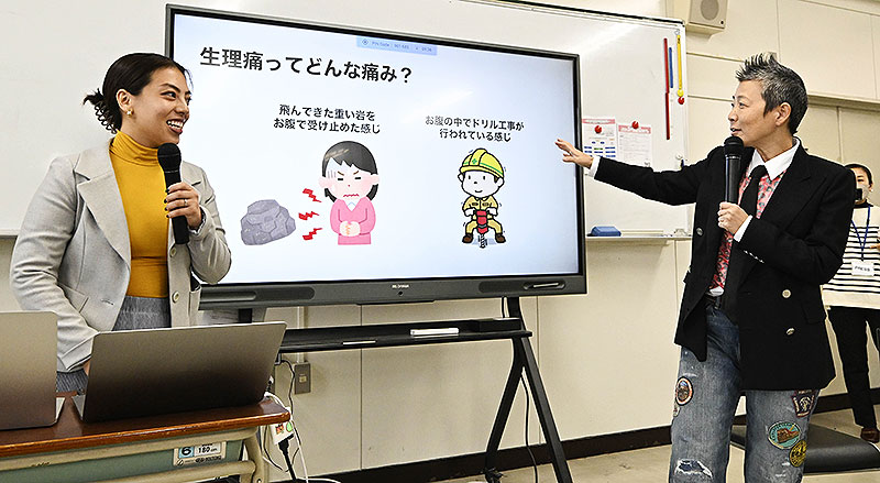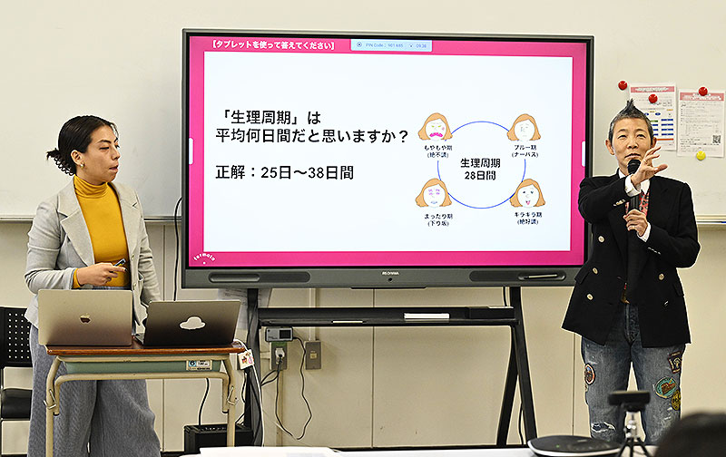生徒から事前に寄せられた「生理はなぜ、女子にだけ起こるのか」「いつ、どのように起こるのか」「生理の時はなぜ、気持ちが不安定になるのか」「どのくらい、どのように痛いのか」などの疑問についてゆっくり回答。