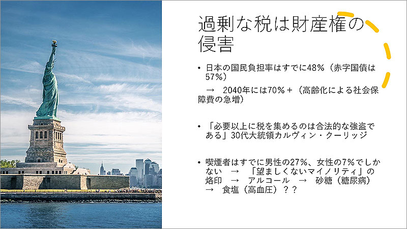 その蔵氏が、加熱式たばこの増税に反対する前段に「巨大化する日本政府が国民から巻き上げる過剰な税金は、財産権の侵害である」という考え方がある。