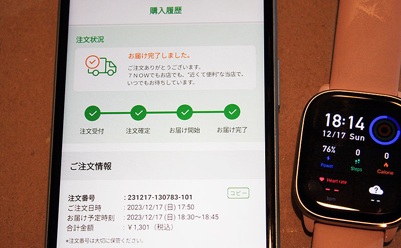 17時50分に注文確定して、届いたのは18時11分(撮影時は18時14分)