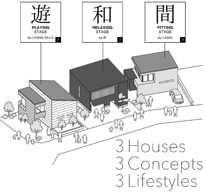 既存の「ノーブルビレッジ水戸」(茨城県水戸市笠原町86)では、この「間」「和」「遊」に加え、大切な人と集いたくなる平屋の家「集」も展示している。
