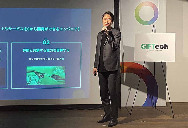 この「GIFTech」では、アカデミーや次世代型ハッカソンを通じ、仲間とともにプロダクトやサービスをゼロから開発するアイディア・技術を深掘りし、これらの体験から「テクノロジーとモノ創りを楽しむ才能」を伸ばしていく。