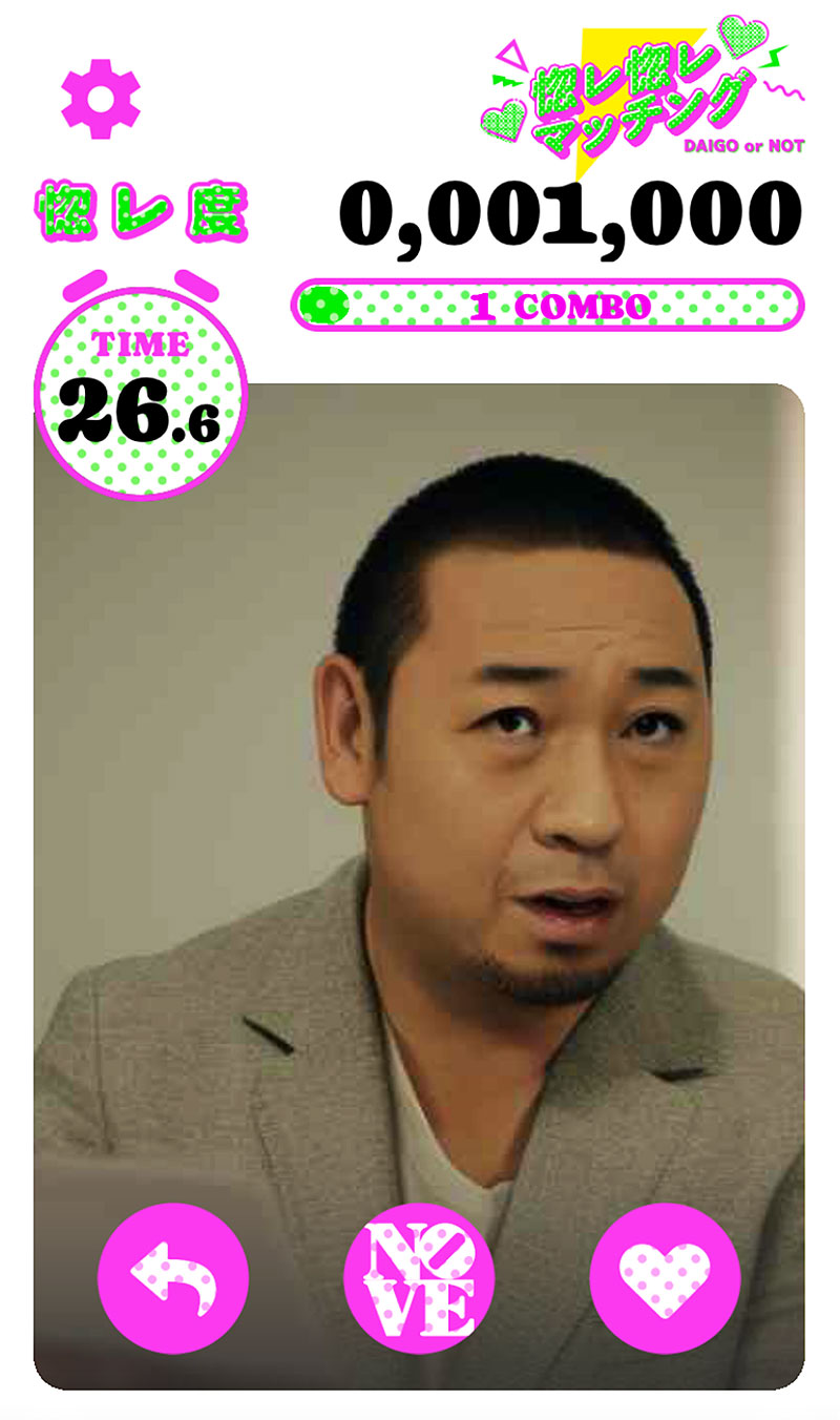 画面上に次々に現れる”本物の大悟”と、”大悟そっくりさん”を正しく仕分けるスワイプゲーム。