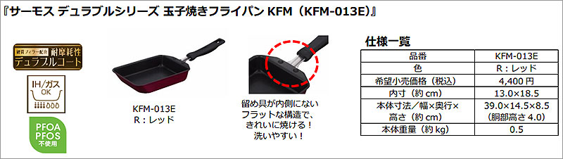 さらに、留め具が内側にないフラットな構造の玉子焼きフライパン(KFM-013E)も注目。