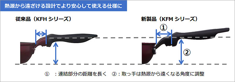 また、取っ手を熱源から遠ざける設計にしてより安心して調理できるよう改良されている。