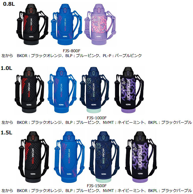 サイズは、0.8L、1.0L、1.5L の3サイズ。スポーツドリンク OK なので、スポーツシーンはもちろん、夏場の熱中症対策にもおすすめ。