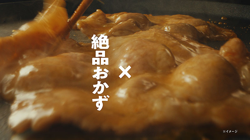 そんなキーメッセージといっしょにうまそうに豚肉生姜焼きに喰らうのは、尾上松也。
