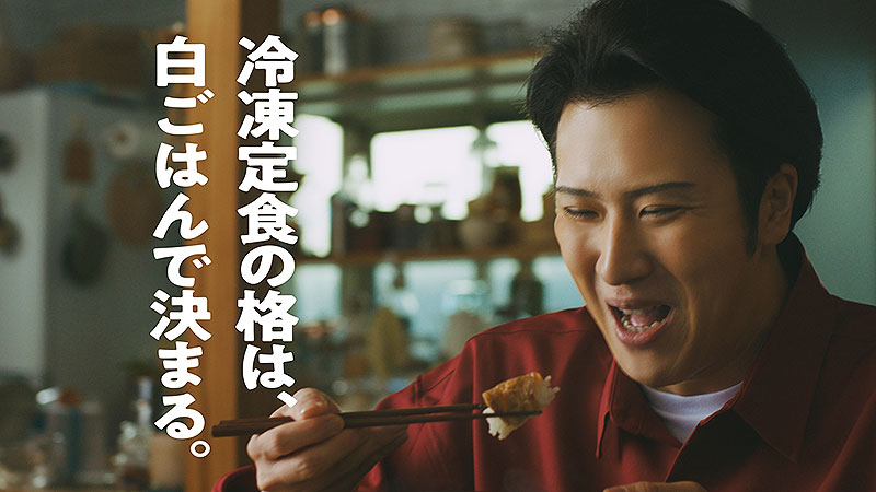 これ、3月23日から全国放映されるニッスイ冷凍食品「まんぞくプレート ふっくらごはんと豚肉生姜焼き」新CM「松也、冷凍定食を食す」篇。