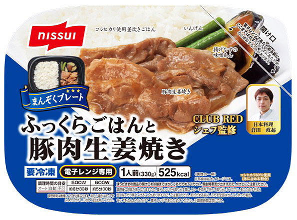 ニッスイ「まんぞくプレート ふっくらごはんと豚肉生姜焼き」は、CLUB RED 倉田政起シェフ監修の品。