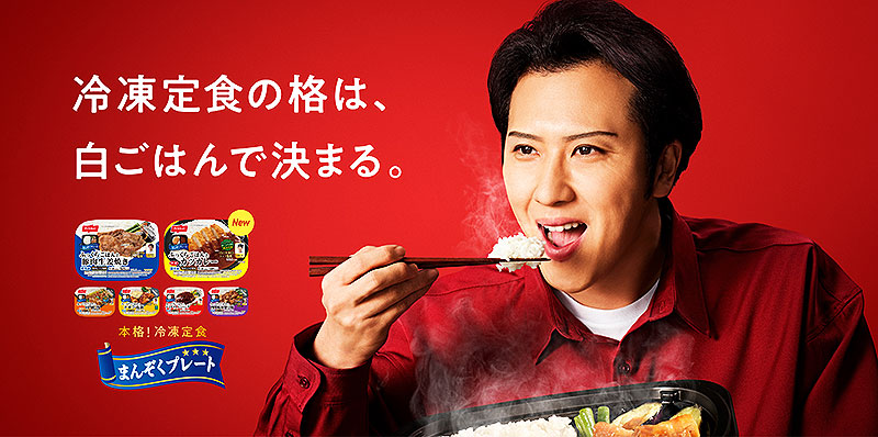 “おいしそうに食べる姿、それ自体をドラマに!”というコンセプトで制作されたこのニッスイ冷凍食品「まんぞくプレート ふっくらごはんと豚肉生姜焼き」新CMは、「まんぞくプレート ふっくらごはんと豚肉生姜焼き」を電子レンジから出して食べているだけのなかに、食べる前の高揚感、食べてみての感動を松也さんのありありとした表情で溢れんばかりに表現。