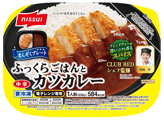 ちなみにニッスイ「まんぞくプレート ふっくらごはんとカツカレー」も注目。