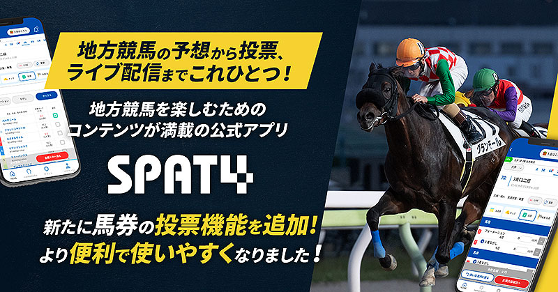 南関東4競馬(浦和・船橋・大井・川崎)が共同で運営し、全国の地方競馬の馬券を電話・インターネットで購入できる地方競馬公式アプリ「SPAT4」。