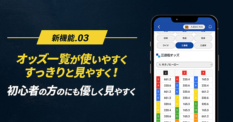 オッズ一覧画面が、すっきりと見やすくなったのもうれしい。