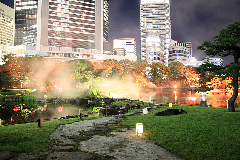 300年以上の時を経て、江戸時代から続く大名庭園の面影が、竹芝・芝浦・浜松町・芝大門の高層ビル・高層マンション群と景色を調和させながら、その美しいコントラストでいまも来園者を魅了する、都心の“時空オアシス”だ。