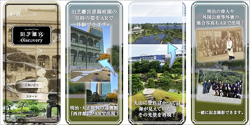 さらに、明治・大正時代に芝離宮で撮影した大隈重信・板垣退助など、明治の偉人や外国公使等外賓の集合写真も AR でチェックできるから、気になる人は Google Play / App Store で「旧芝離宮Discovery」で検索!