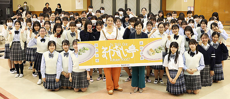 この日は、東京家政学院中学校・高等学校へ出向き、生徒81名に、「国内自給 まかない亭」出前授業を展開。