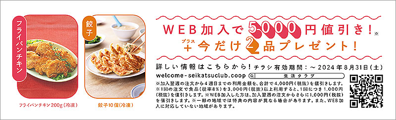 そんな生活クラブはいま、WEB加入限定、今だけ2品プレゼントを展開中。