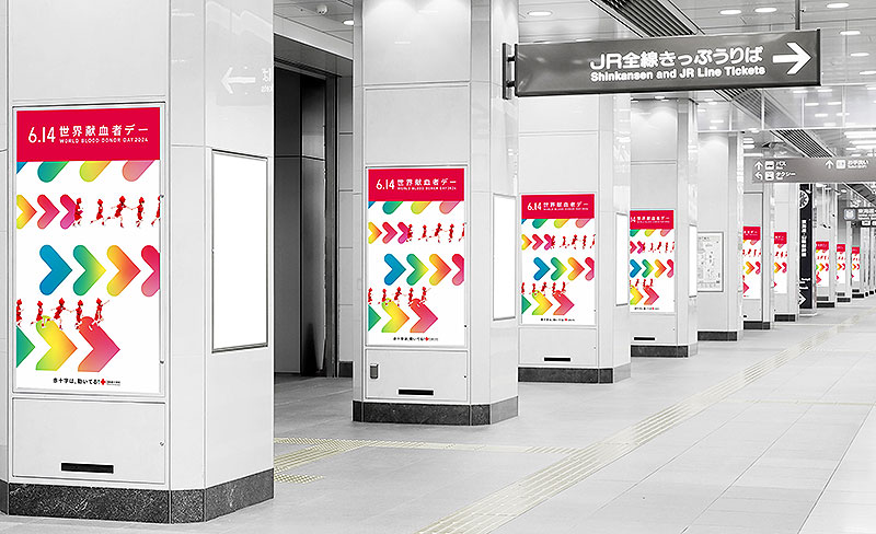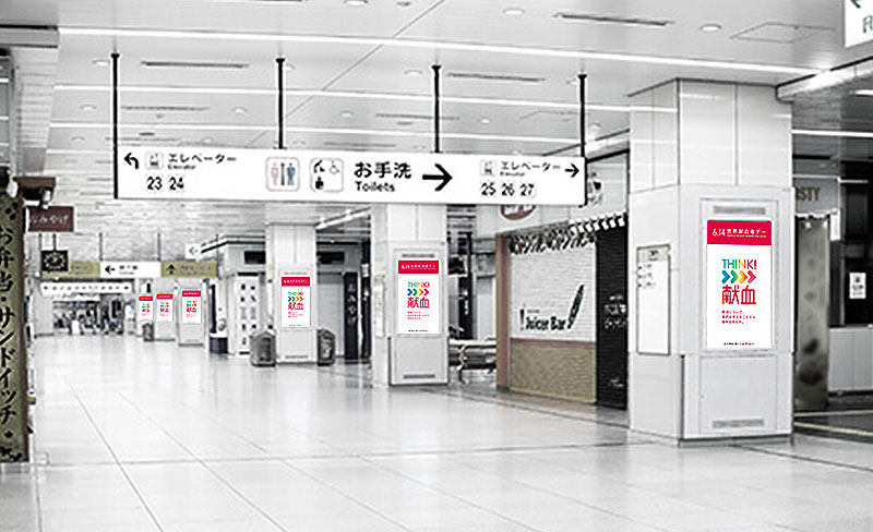 駅サイネージでは、新CM 放映のほか、6月14日「世界献血者デー」にあわせた献血協力者への感謝のメッセージも流れるから、要チェック。