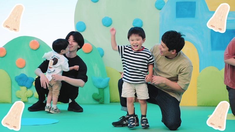 子ども番組の体操コーナー風に、親子がニオイをテーマにしたオリジナルの歌に合わせて体操をする動画「デ・オウマンといっしょ」が公開された。