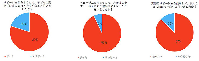 またほかにも「子どもをより愛おしく感じた」「子育てに自信がついた」といったコメントも得られ、実際にママやパパの精神的な面でもポジティブに作用することがわかった。
