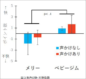 図の指数は快の発声を1ポイント、不快の発声を-1ポイントとして換算したポイント数。