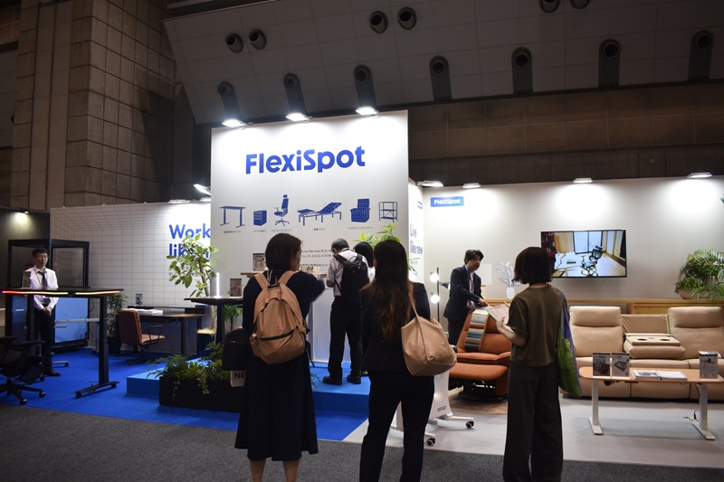 オフィス家具国際展示会「オルガテック東京2024」が5月、東京ビッグサイトで開催されました。第3回目を迎える今回も、ビジネスパーソンを中心とした多くの人が来場しました。中でも一風変わったブースで注目を集めていたのが「FlexiSpot(フレキシスポット)」です。「Work like new,Live like new」をコンセプトに掲げ、電動昇降デスクやエクササイズができるデスクバイクなど13点を展示。ブースの半分がオフィス内をイメージして構成されており、もう半分は自宅のリビングを彷彿とさせるインテリアになっていました。