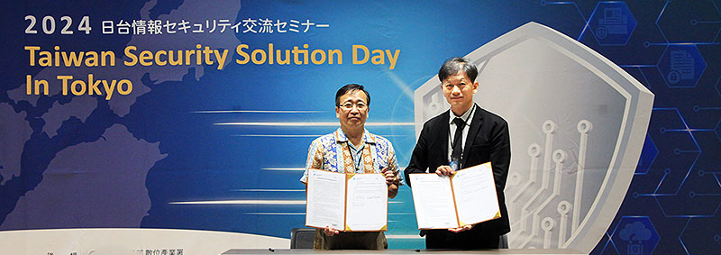 また、今回の日台情報セキュリティ交流セミナー2024 では、日本側のサプライチェーン・サイバーセキュリティー・コンソーシアム(SC3)梶浦敏範 運営委員会議長(日本サイバーセキュリティ・イノベーション委員会 代表理事 兼 上席研究員)と、台湾側の工業技術研究院(ITRI) インフォメーションコミュニケーションチーム チーム長 Division Director アレス・チョ 博士が、「日台セキュリティ産業協力意向書」に署名。